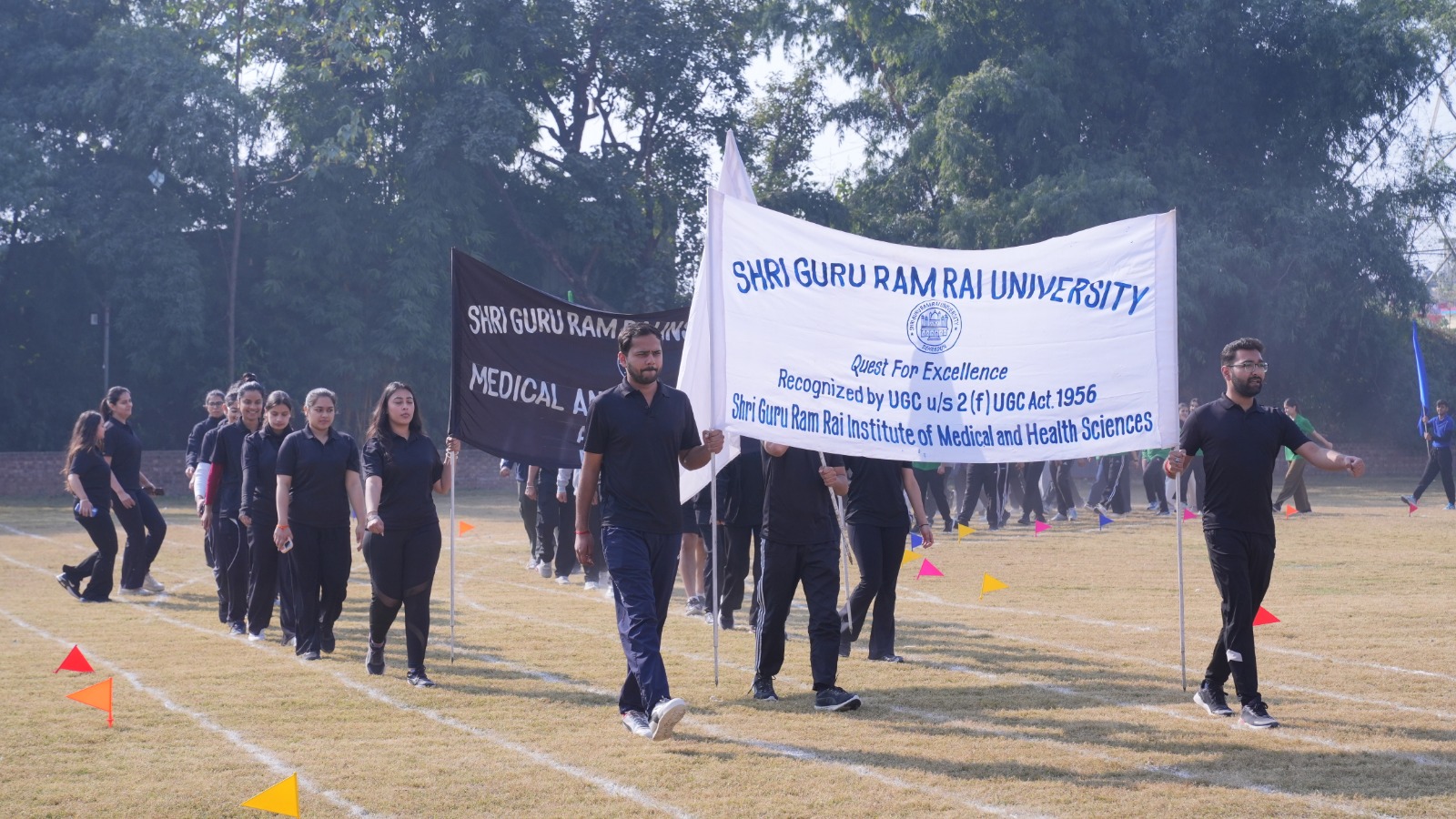 इस अवसर पर श्री गुरु राम राय इंस्टीट्यूट ऑफ मेडिकल एंड हेल्थ साइंसेज के प्राचार्य डॉ. अशोक नायक, प्रमुख चिकित्सा अधीक्षक, श्री महंत इन्दिरेश अस्पताल डॉ. अनिल कुमार मलिक तथा स्पोर्ट्स कमेटी के चेयरमैन डॉ. संजय साधु सहित विश्वविद्यालय परिवार के कई सदस्य उपस्थित रहे।
