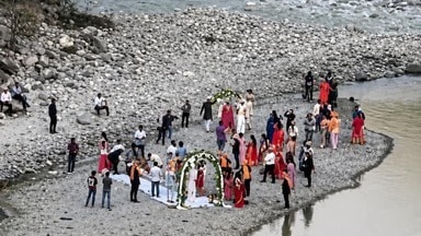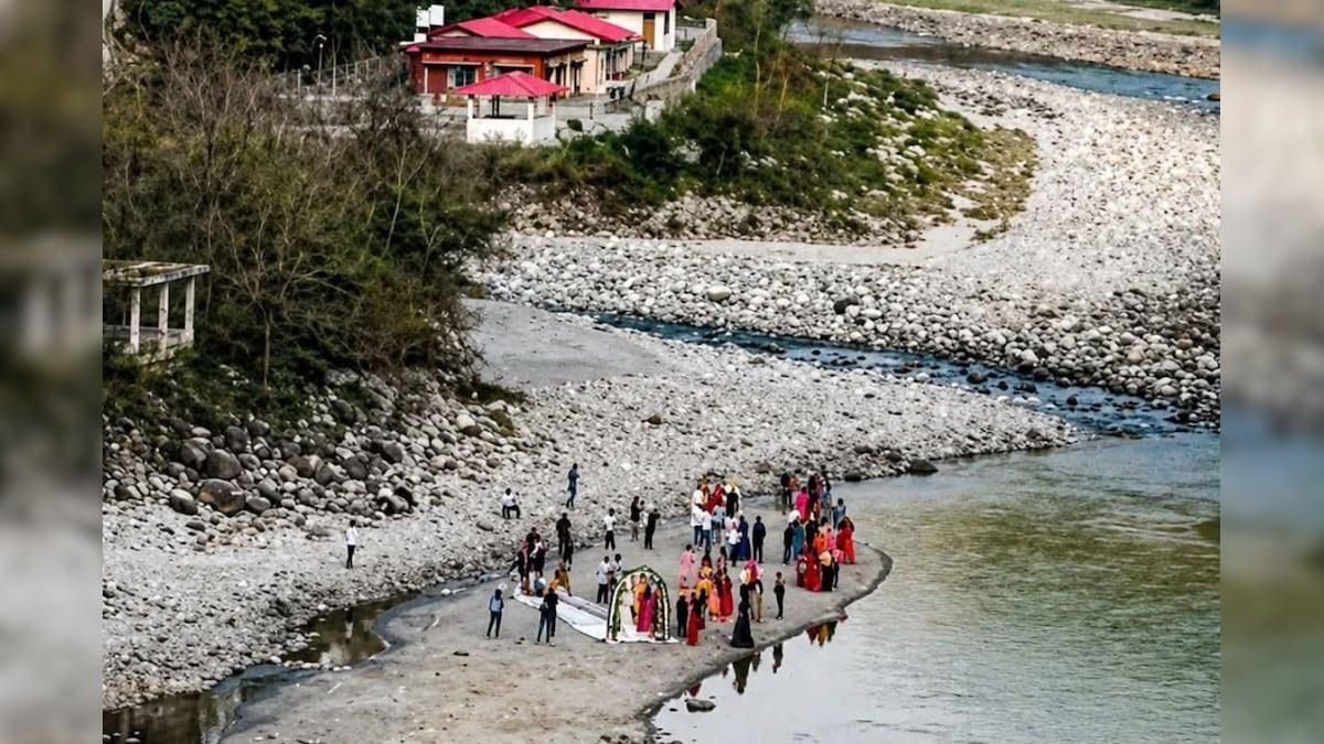 अल्मोड़ा : उत्तराखंड को वेडिंग डेस्टिनेशन हब के रूप में विकसित करने की दिशा में सरकार तेजी से काम कर रही है, लेकिन इसी बीच अल्मोड़ा जिले के सल्ट क्षेत्र के मर्चूला से सामने आया एक मामला इस पहल पर सवाल खड़े कर रहा है। यहां रामगंगा और बदनगढ़ नदी के संगम के पास स्थित एक पुराने अंत्येष्टि स्थल पर विवाह समारोह की जयमाला रस्म कराए जाने का वीडियो सोशल मीडिया पर वायरल हो गया है, जिसके बाद विवाद गहरा गया है।