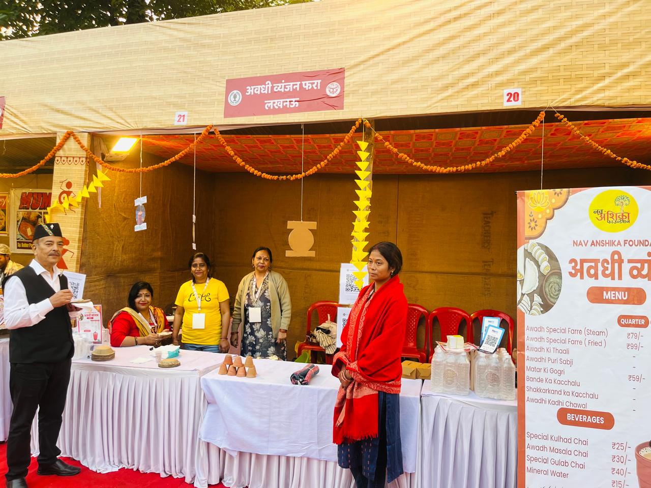 लखनऊ। उत्तर प्रदेश लोक एवं जनजाति संस्कृति संस्थान की ओर से 13 से 18 नवम्बर तक इंदिरा गांधी प्रतिष्ठान में आयोजित “जनजाति भागीदारी उत्सव”में नव अंशिका फाउण्डेशन की ओर से अवधी खानपान का स्टॉल लगाया गया है। इसमें नीशू त्यागी ने बताया कि नव अंशिका व्यंजन ही नहीं महिलाओं को आत्मनिर्भर भी बना रही है। उनके स्टॉल पर सबसे ज्यादा पसंद किया जा रहा है चावल का फराह, गुड़ के पारे, देसी घी के लड्डू, मटर की घुघरी, गट्टे की सब्जी, कढ़ी, चावल की पूड़ी, बंडे की चाट, गुबाल की चाय, शकरकंदी के कचालू। अवधी थाल उनके स्टॉल पर उपलब्ध है।