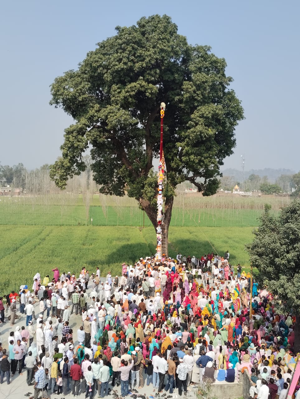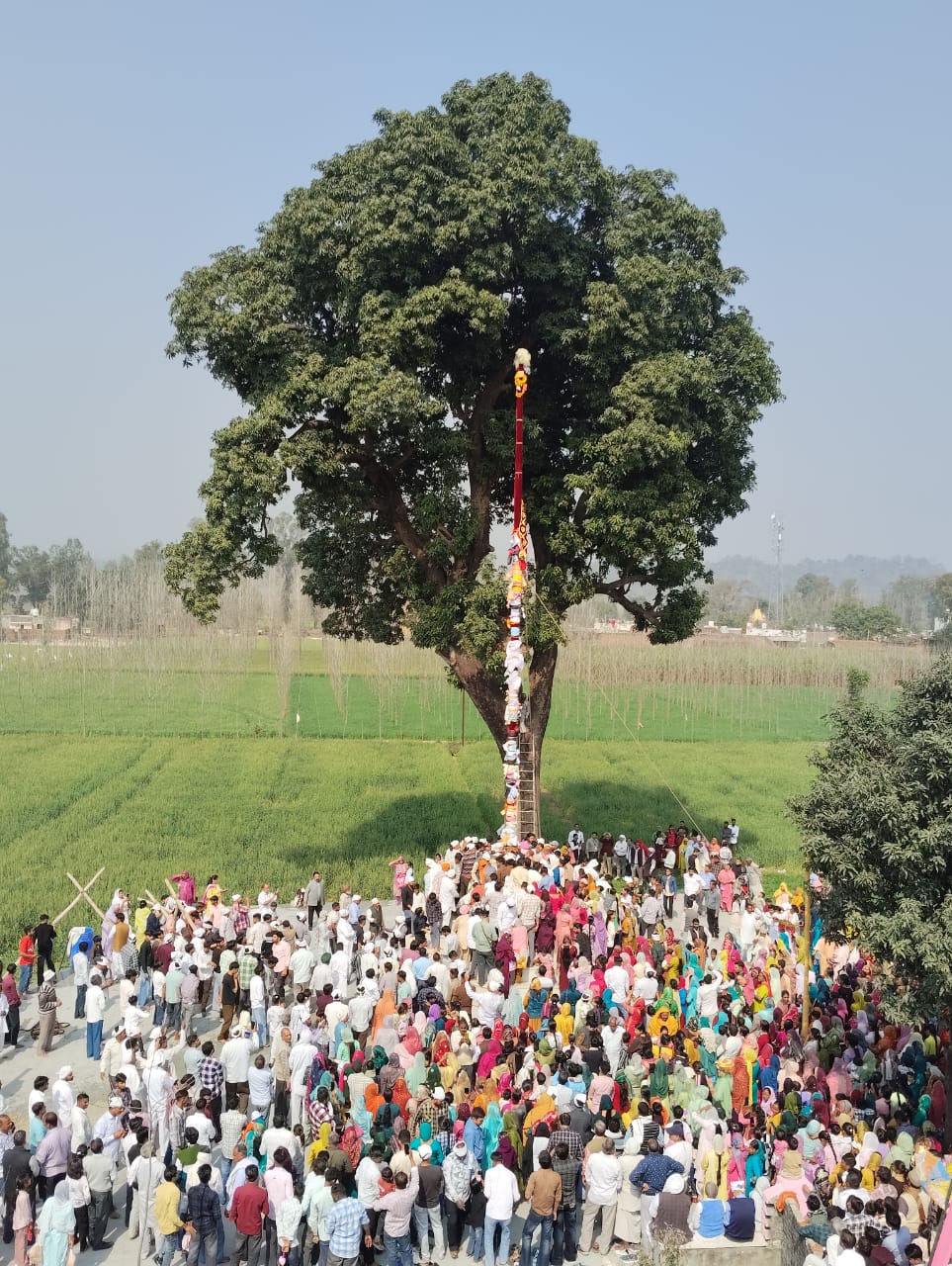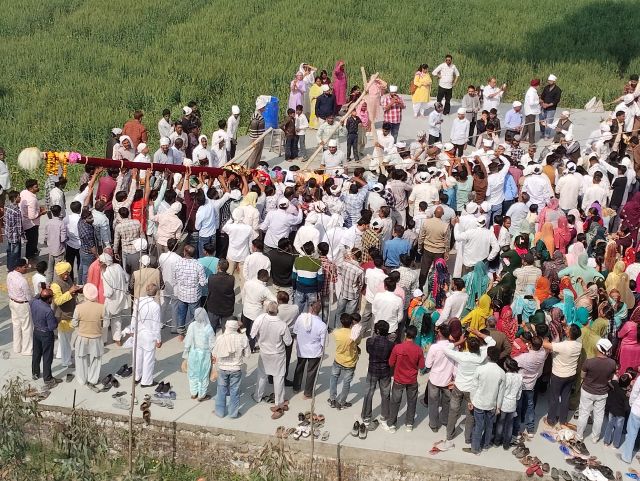 हरियाणा के अराईयांवाला में शुक्रवार को हजारों श्रद्धालुओं की उपस्थिति में श्री झण्डे जी का विधिवत ध्वजारोहण संपन्न हुआ। श्रीमहंत देवेंद्र दास जी महाराज के नेतृत्व में 100 सदस्यीय जत्था देहरादून से रवाना होकर दोपहर 12:10 बजे वहां पहुंचा। परंपरा के अनुसार पुराने ध्वज को पूर्ण सम्मान के साथ उतारा गया, फिर दूध, दही, घी, मक्खन, गंगाजल और पंचगव्य से स्नान कराकर 60 फीट ऊंचे नए श्री झण्डे जी का आरोहण किया गया।