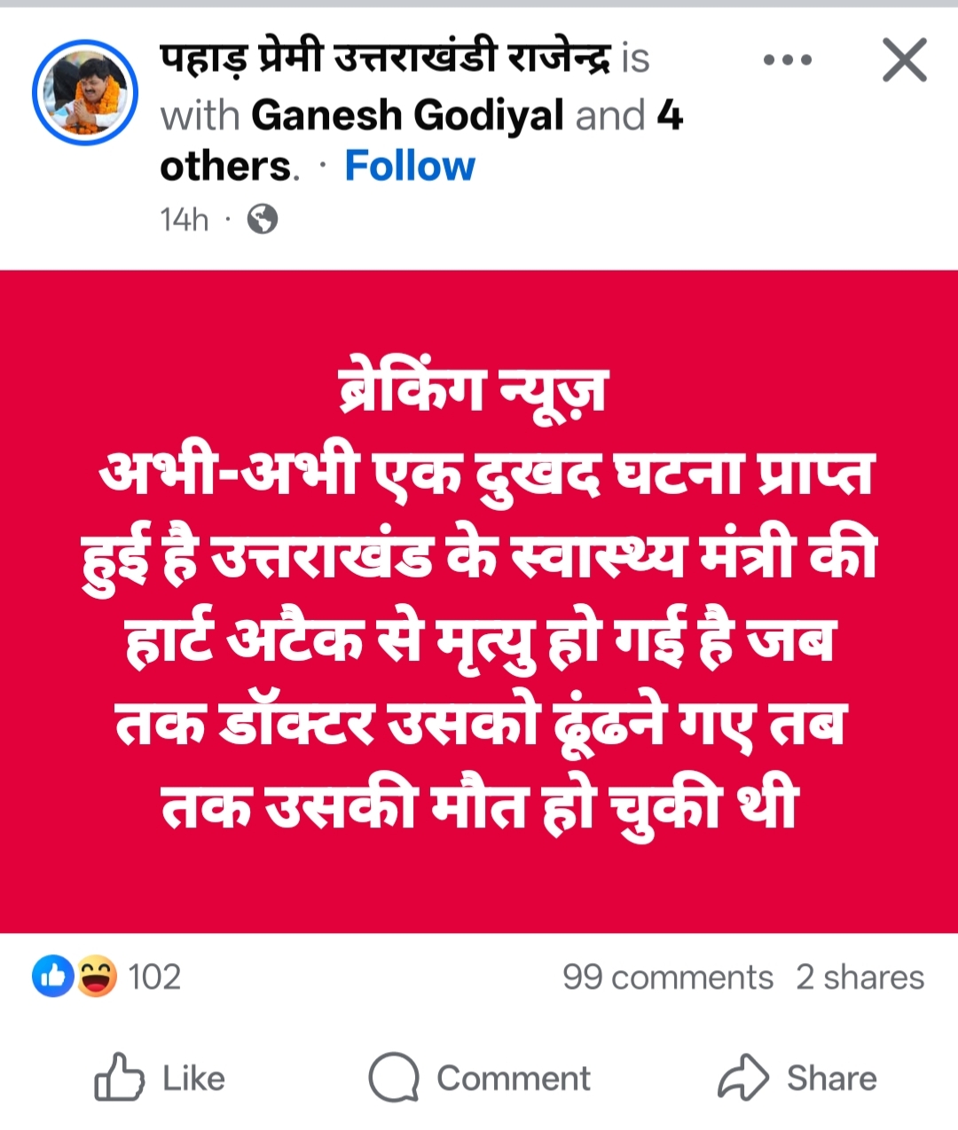 बीते कल से सोशल मीडिया प्लेटफॉर्म्स पर उत्तराखंड के स्वास्थ्य मंत्री डॉ. धन सिंह रावत की मौत से जुड़ी भ्रामक खबरें तेजी से वायरल हो रही हैं। बिना किसी पुष्टि, प्रमाण या आधिकारिक बयान के फैल रही इन अफवाहों ने राज्य में भ्रम और चिंता का माहौल पैदा कर दिया है।